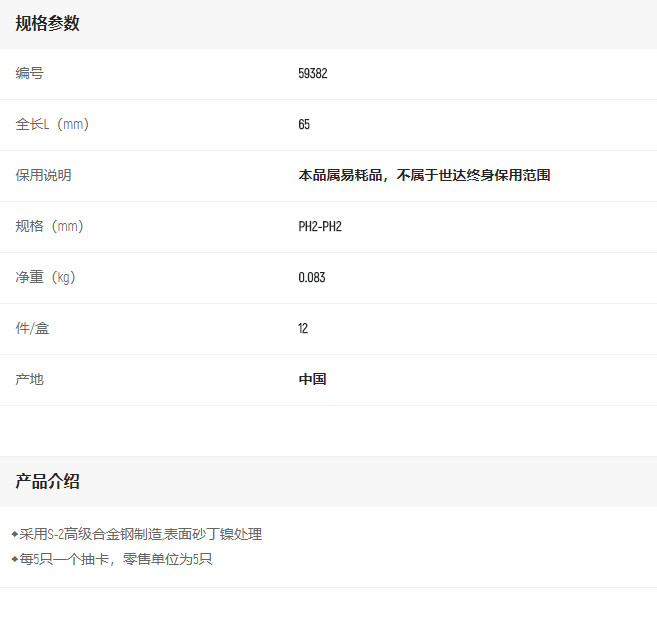 產(chǎn)品名字:世達(dá)6.3MM系列65MM長雙頭旋具頭PH2-PH2
