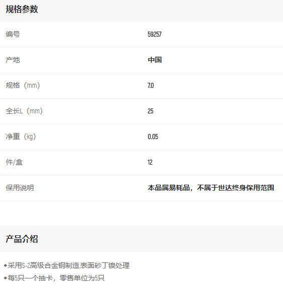 產(chǎn)品名字:世達6.3mm系列25mm長六角旋具頭7mm