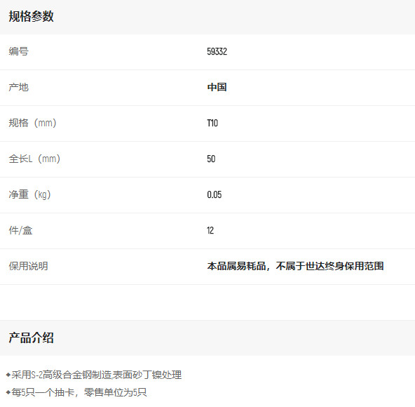 產(chǎn)品名字:世達5件6.3mm系列50mm旋具頭T10