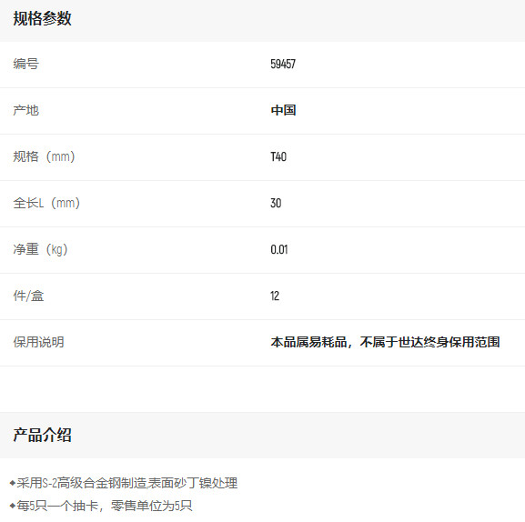 產(chǎn)品名字:世達(dá)5件套8mm系列30mm長(zhǎng)中孔花型旋具頭T40