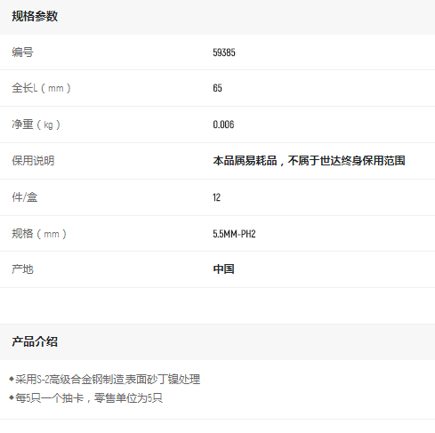 產(chǎn)品名字:世達(dá)6.3MM系列65MM長(zhǎng)雙頭旋具頭5.5mm-PH2