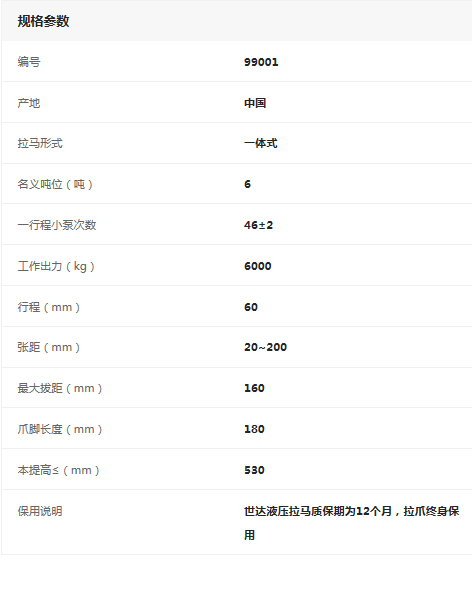 產(chǎn)品名字:世達(dá)一體式液壓拉馬6噸