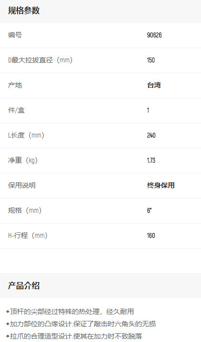產(chǎn)品名字:世達(dá)2爪拉馬6寸