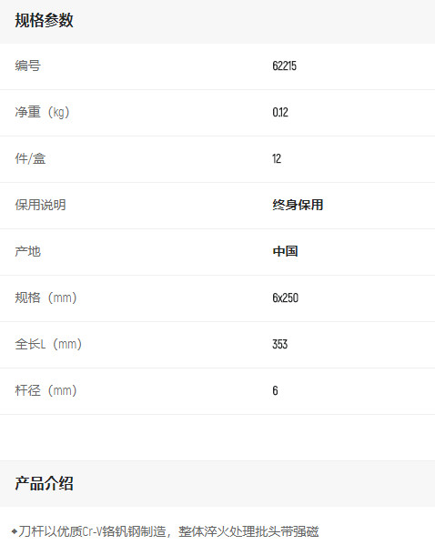 產(chǎn)品名字:世達(dá)A系列一字批6x250mm