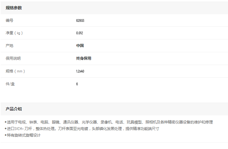 產(chǎn)品名字:世達微型一字批1.2*40mm