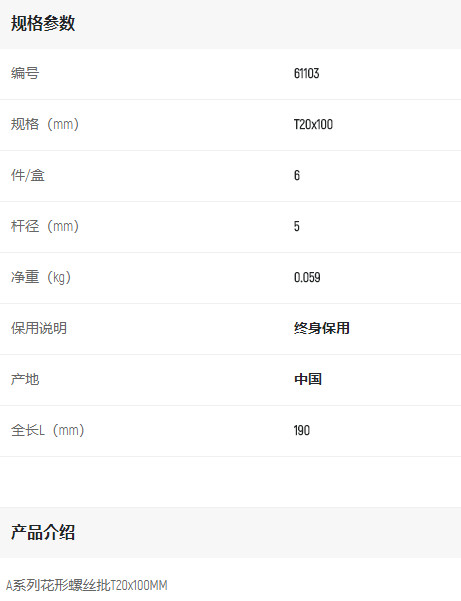 產(chǎn)品名字:世達花形螺絲批T20*100mm