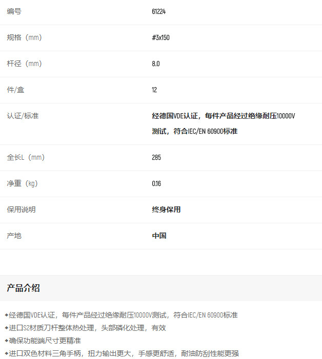 產(chǎn)品名字:世達(dá)T系列雙色柄十字絕緣螺絲批#3x150MM