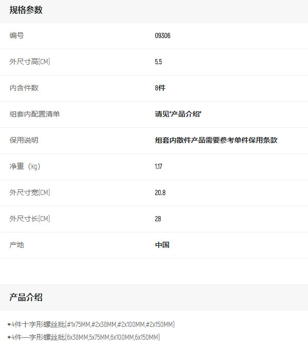 產(chǎn)品名字:世達8件A系列一十字批組套